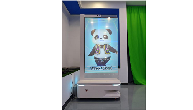 *电容触摸.纤薄整机设计 *融合人工智能可实时呈现虚拟数字人形象与动态内容。 *支持预设路线巡航、智能避障及环境感应功能 *55寸OLED透明屏,兼具高透明度与高画质特性, *实现精准移动与姿态调整,适配不同空间布局需求,